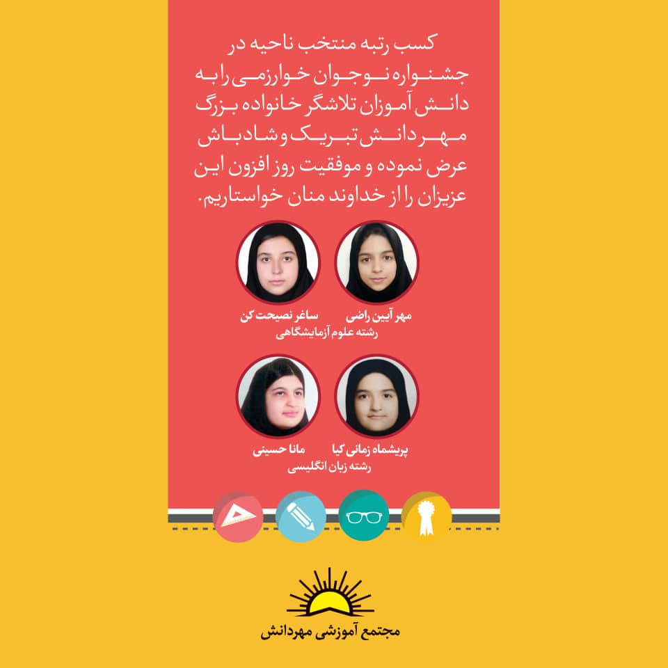 کسب رتبه منتخب ناحیه در جشنواره خوارزمی