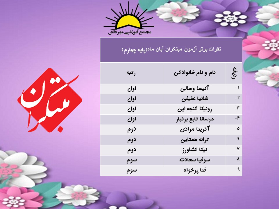 نفرات برترآزمون مبتکران پایه چهارم
