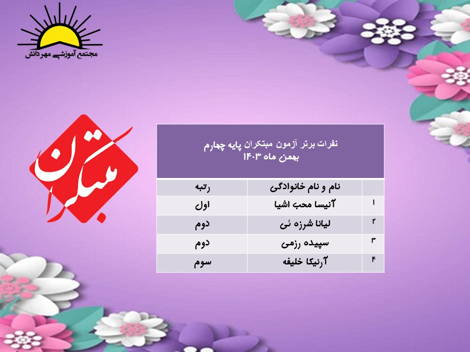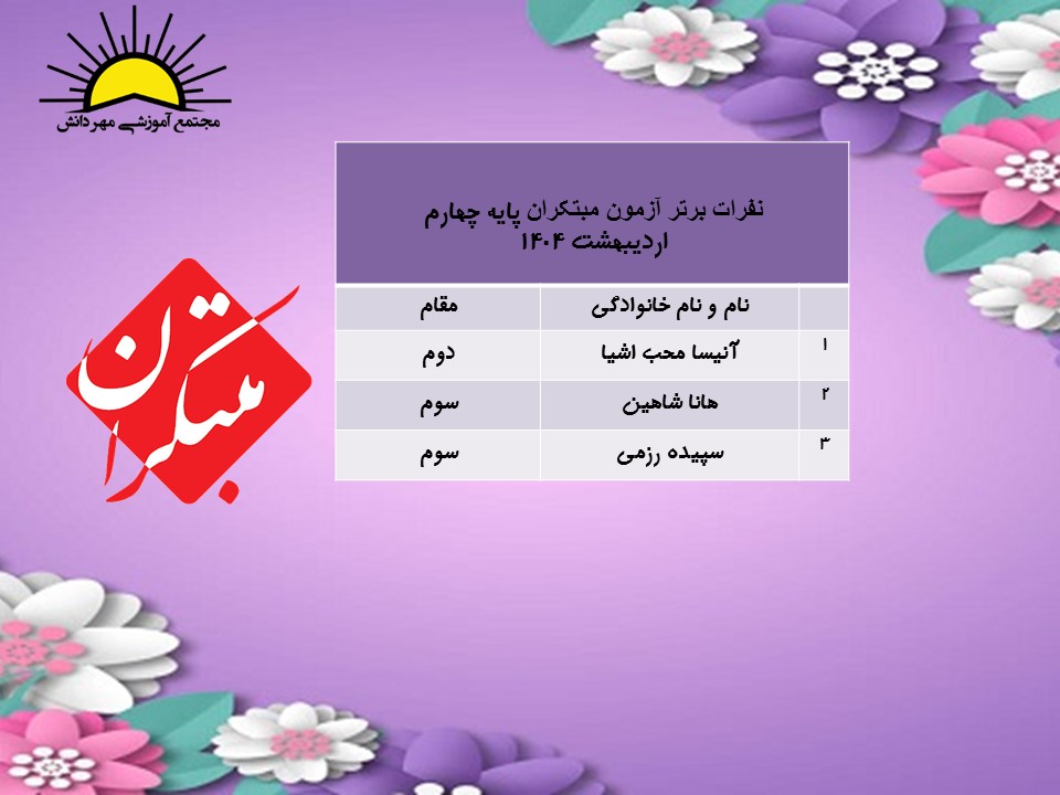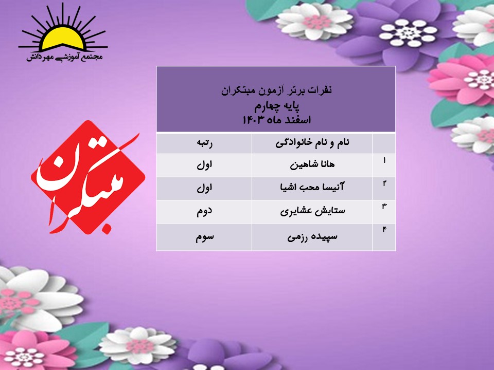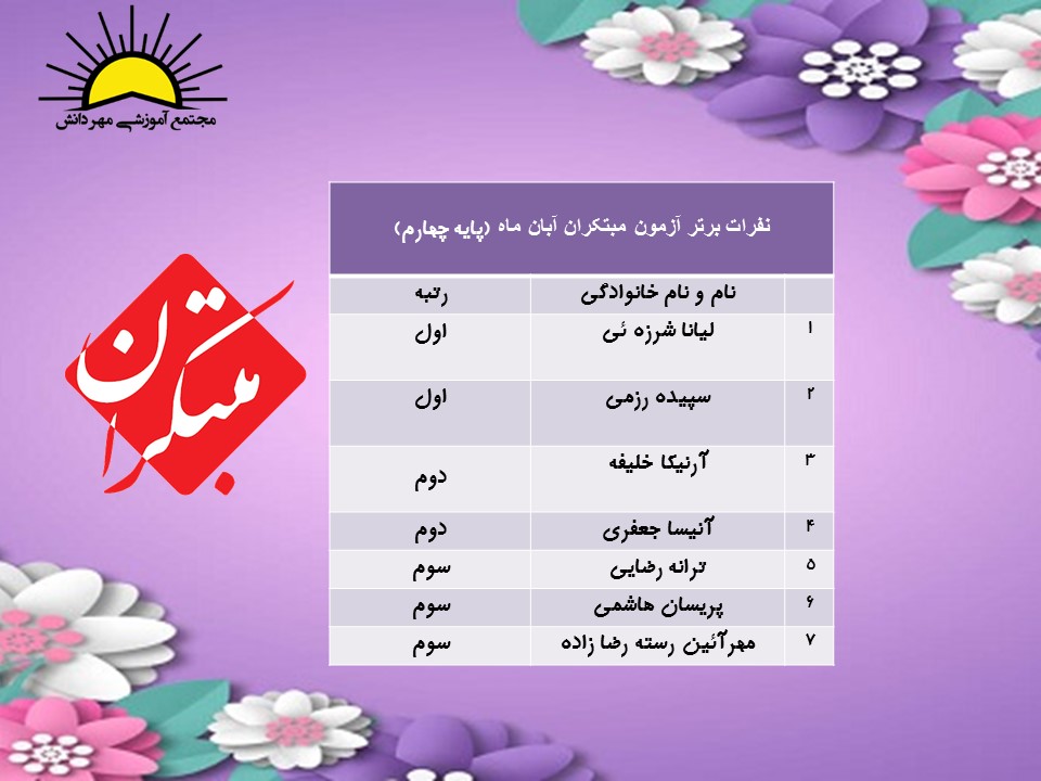 نفرات برترآزمون مبتکران پایه چهارم
