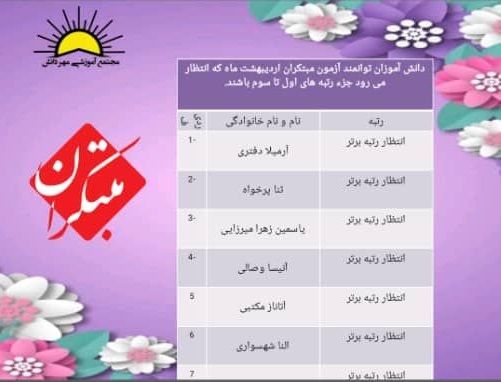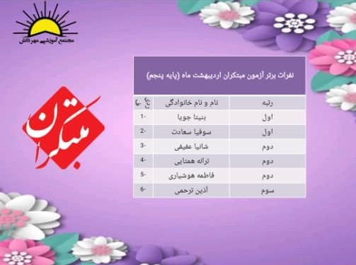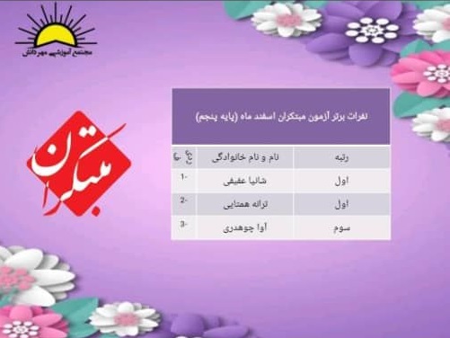 نفرات برترآزمون مبتکران پایه پنجم