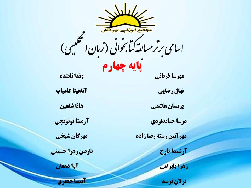 نفرات برتر مسابقات کتابخوانی- زبان انگلیسی
